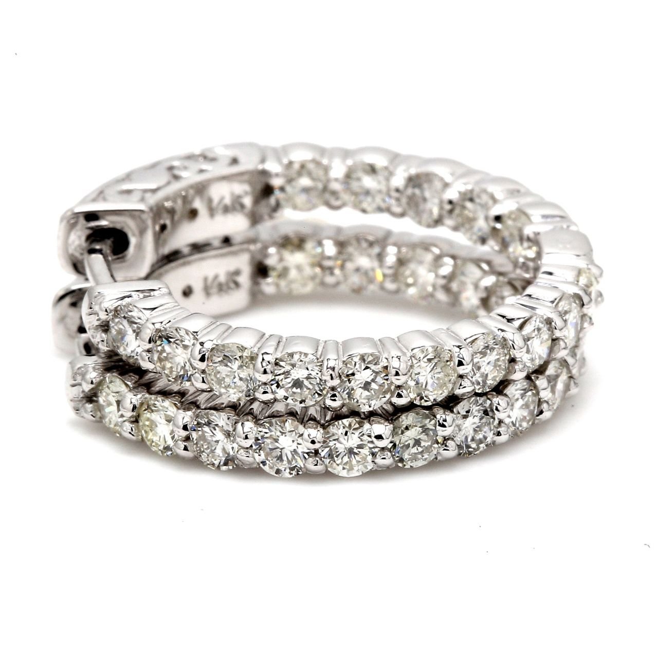 0.75′ Inside out hoop earrings with 4-prong set (30) round diamonds & with special spring lock. D1.74ct.t.w.