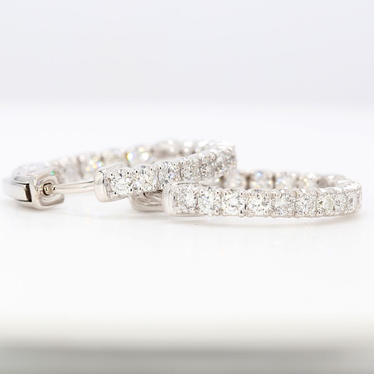 0.75′ Inside out hoop earrings with 4-prong set round diamonds. D1.04ct.t.w.