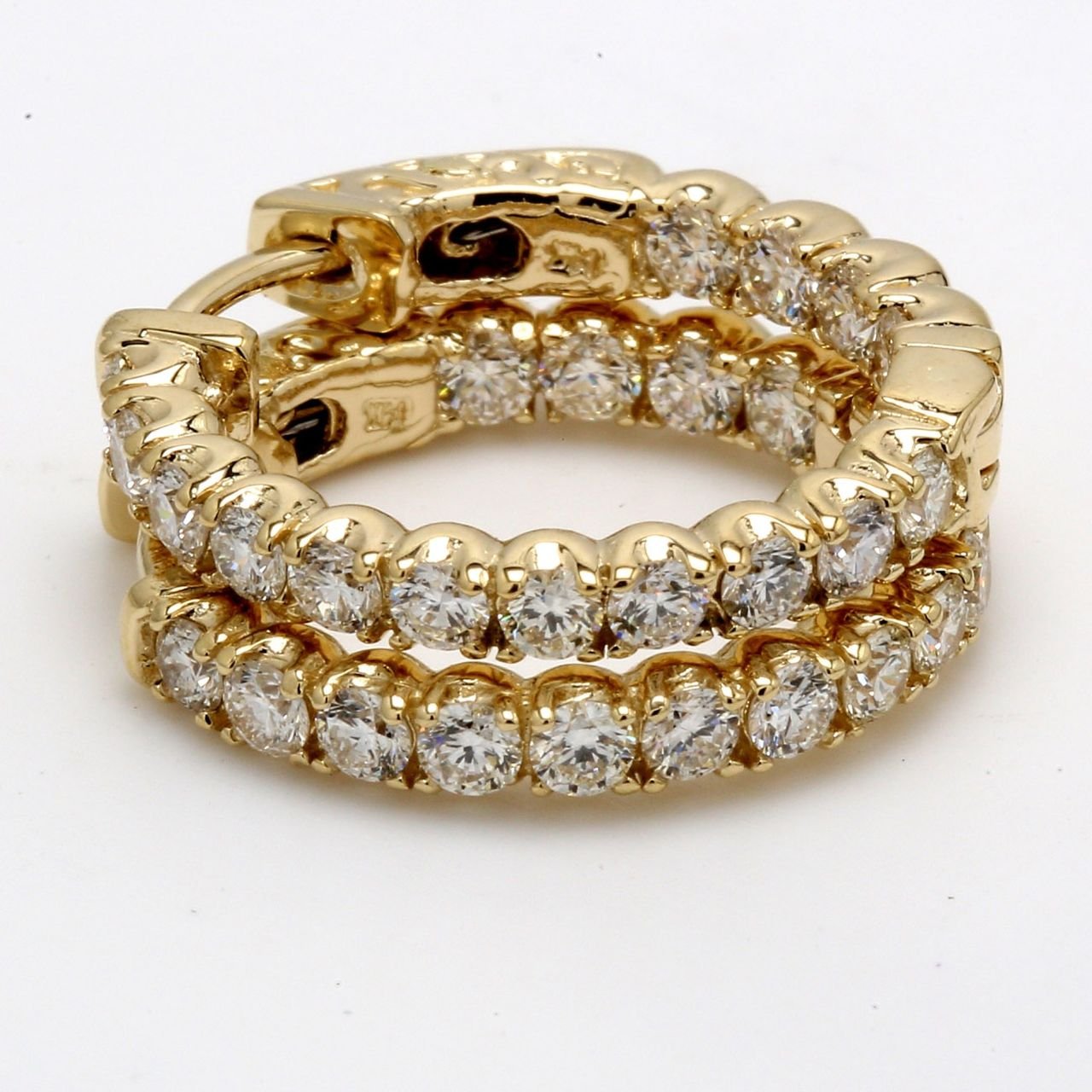 0.75′ Inside out hoop earrings with prong set (30) round diamonds. D1.51ct.t.w.