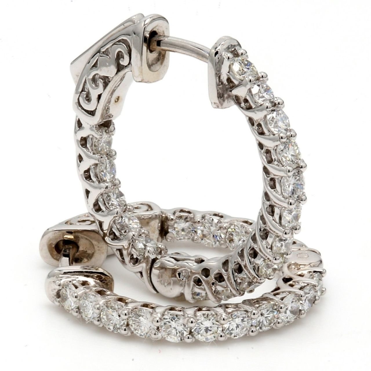 0.75′ Inside out hoop earrings with shared prong set (24) round diamonds & with special spring lock. D0.94ct.t.w.