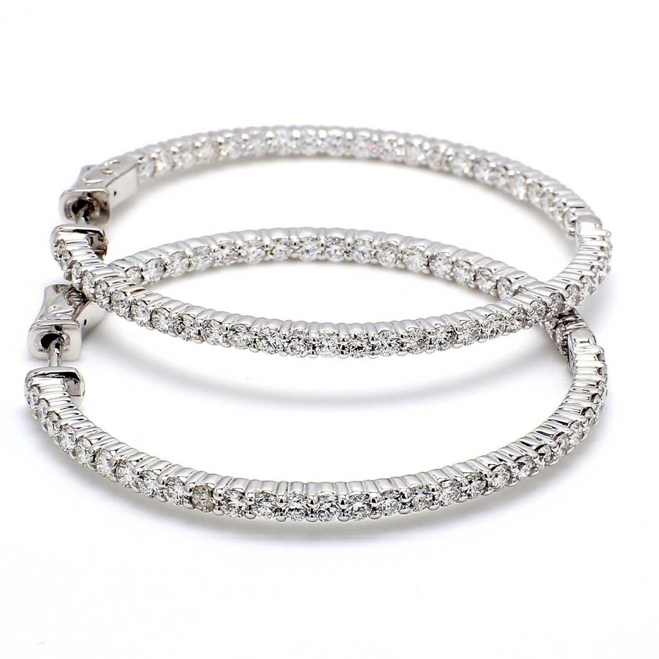 1.25′ Inside out hoop earrings with shared prong set (58) round diamonds & with special spring lock. D3.22ct.t.w.