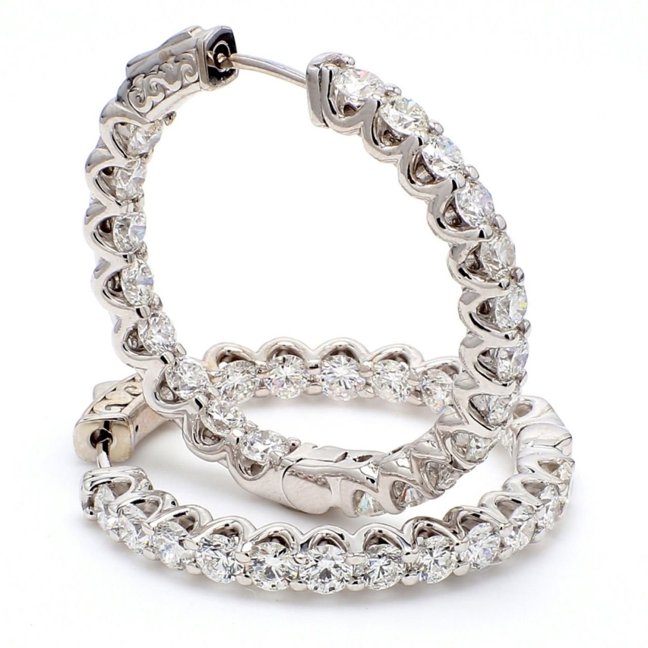 1.25′ Inside out hoop earrings with U-prong set round diamonds. D5.09ct.t.w.