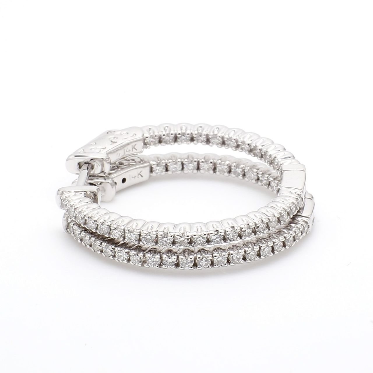 1′ Inside out hoop earrings with prong set round diamonds. D0.69ct.t.w.