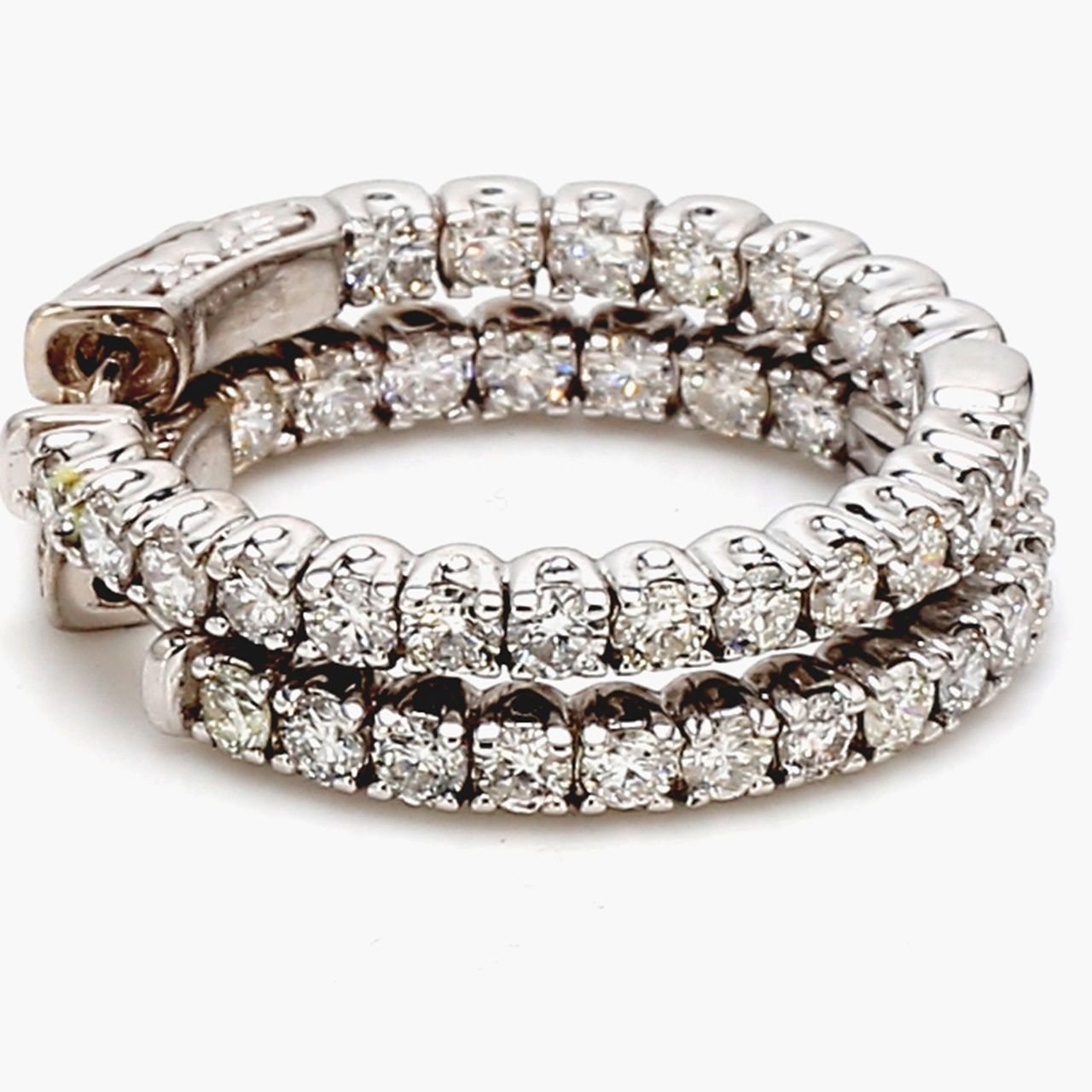 1′ Inside out hoop earrings with prong set round diamonds. D2.02ct.t.w.