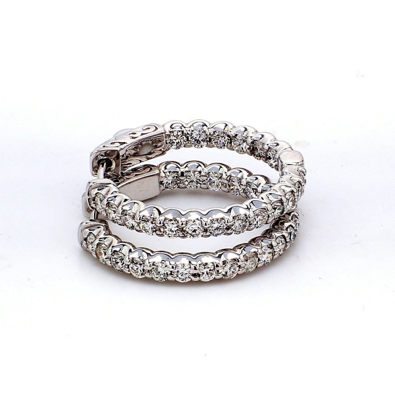 1′ Inside out hoop earrings with shared prong set round diamonds. D1.42ct.t.w.