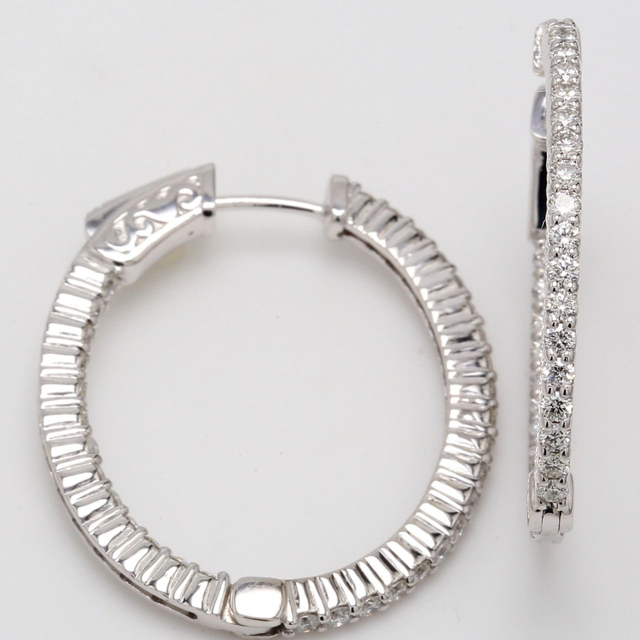 Be the first to review “1′ Oval shaped inside out hoop earrings with shared prong set round diamonds. D1.42ct.t.w.” Cancel reply