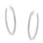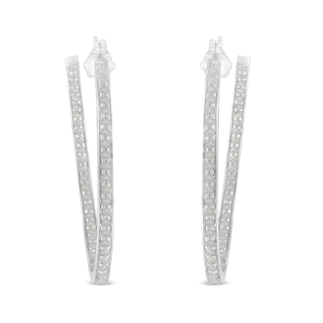 10k White Gold 1 cttw Diamond Inside-Out Hoop Earrings (I-J Clarity, I2-I3 Color)