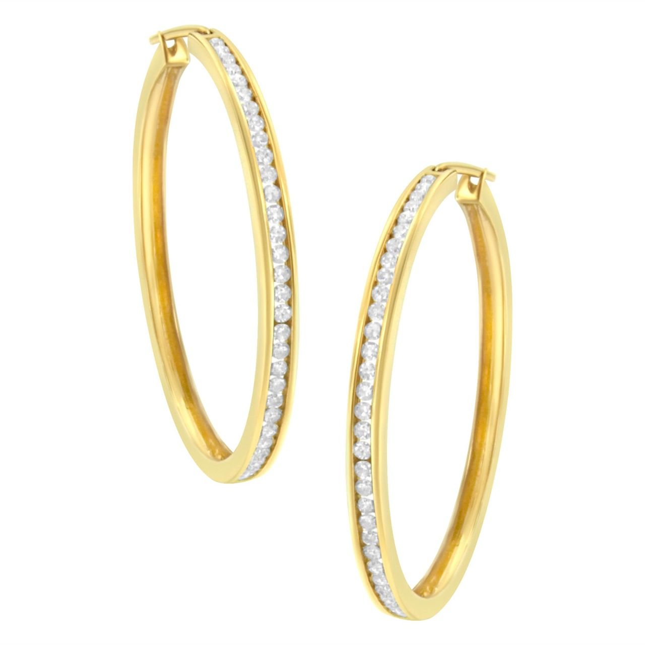 10K Yellow Gold 1 cttw Channel Set Diamond Hoop Earrings (I-J Clarity, I1-I2 Color)