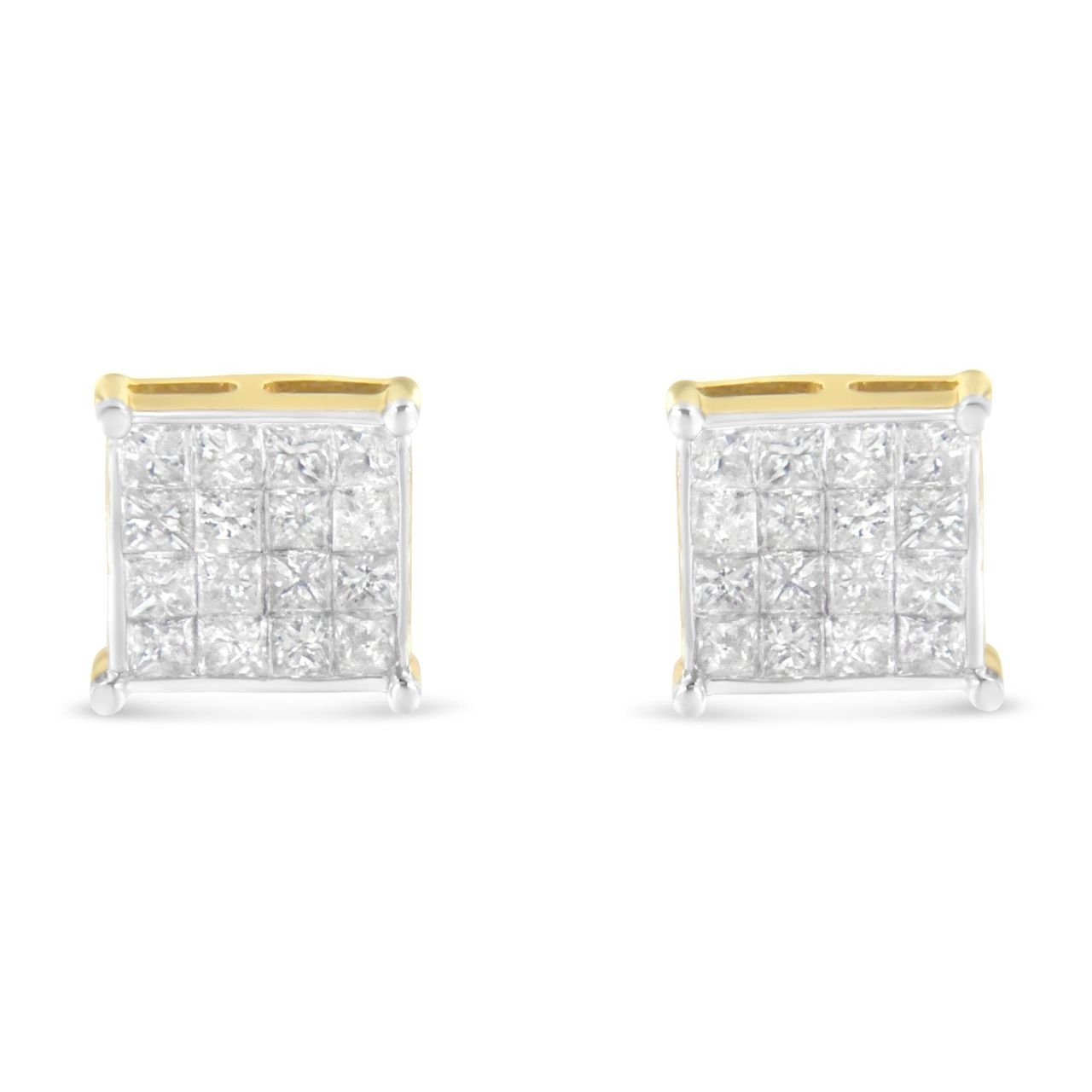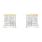 Lend a touch of sophistication to your gorgeous look with these stunning stud earrings. Bold and brilliant, the earrings are made of 10 karats yellow gold. Each of the piece is embellished with shimmering princess cut diamonds that are arranged in an invisible setting. The cubical earrings are so classy that you will love to carry them all day long.