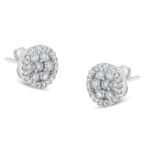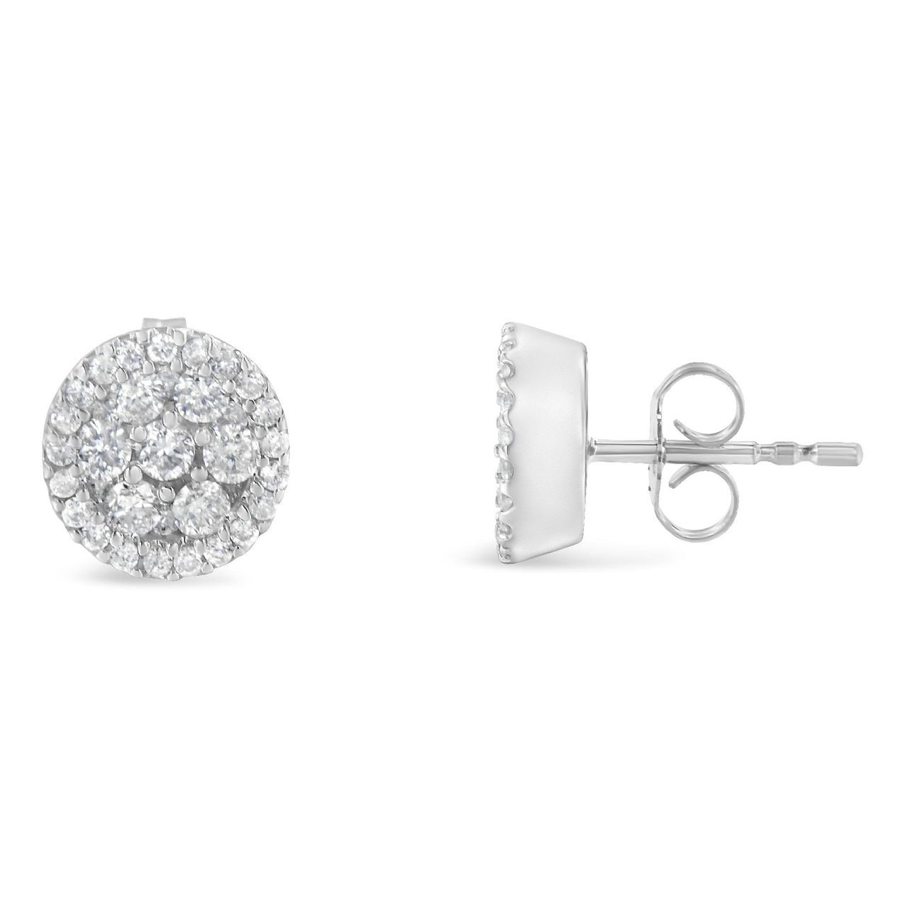 14K White Gold 1.0 Cttw Brilliant-Cut Diamond Halo-Style Cluster Round Button Stud Earrings (H-I Color, I1-I2 Clarity)