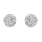 Elegant and timeless, these 14K white gold stud earrings feature round, brilliant cut diamonds in a halo style button shape. The earrings have three circular rows of diamonds with your choice of either 1/2 or 1.0 carat total weight worth of diamonds. The earrings feature pushback closures with notched posts and friction backs that keep these pierced earrings safe and secure on your ears for comfortable, worry-free wear all day long. This authentic design is crafted of real 14 karat gold, a precious metal that will keep a tarnish-free shine for years to come. These classic earrings make a great gift for any special occasion! Diamonds are thought to give the wearer clarity and illuminate solutions to life’s problems. These stud style floral cluster earrings are subtle enough for casual affairs but sparkle in formal settings as well. Coordinate these earrings with your favorite diamond necklace or other diamond jewelry to create a complete elegant ensemble.