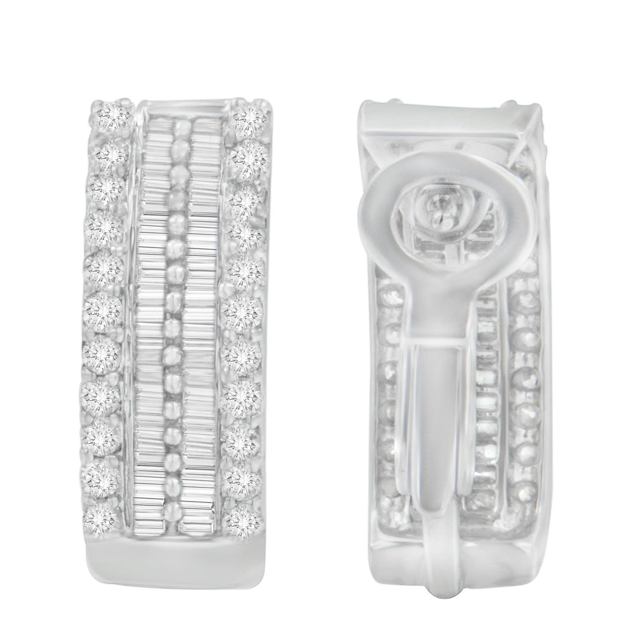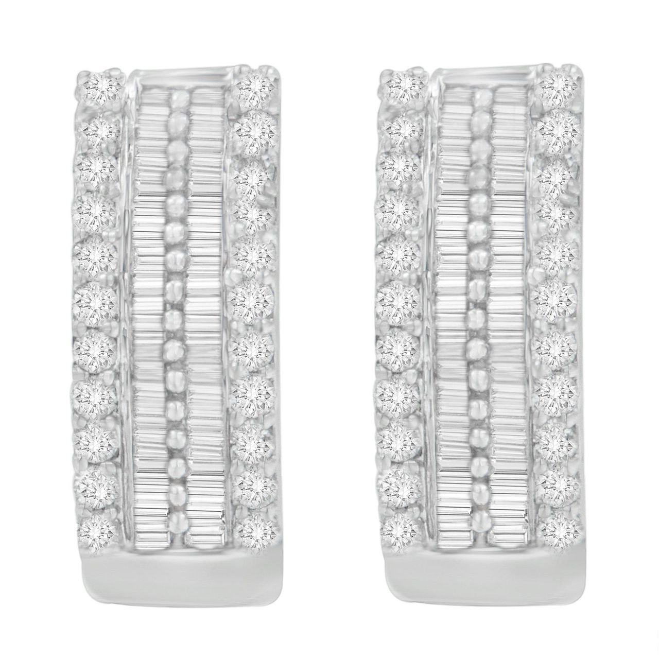 14K White Gold 1 1/2 cttw Round and Baguette Cut Diamond Earrings (H-I, SI2-I1)