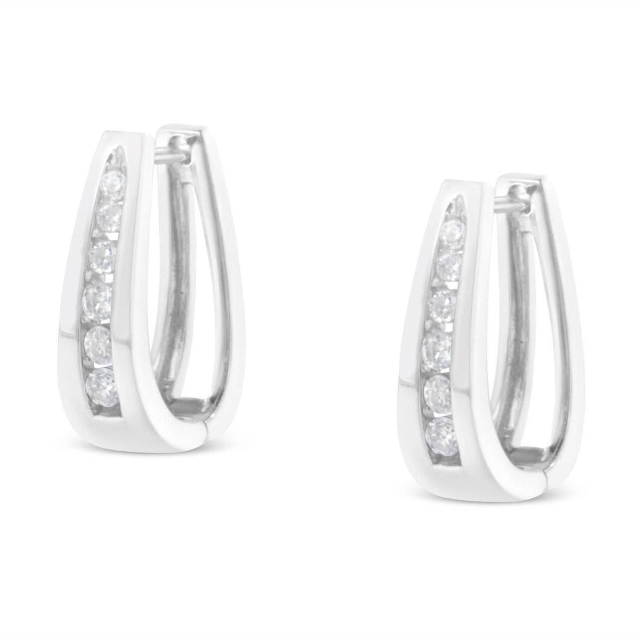 14k White Gold 1/4 Cttw Channel-Set Brilliant Round-Cut Diamond Hoop Earrings (I-J Color, I2-I3 Clarity)