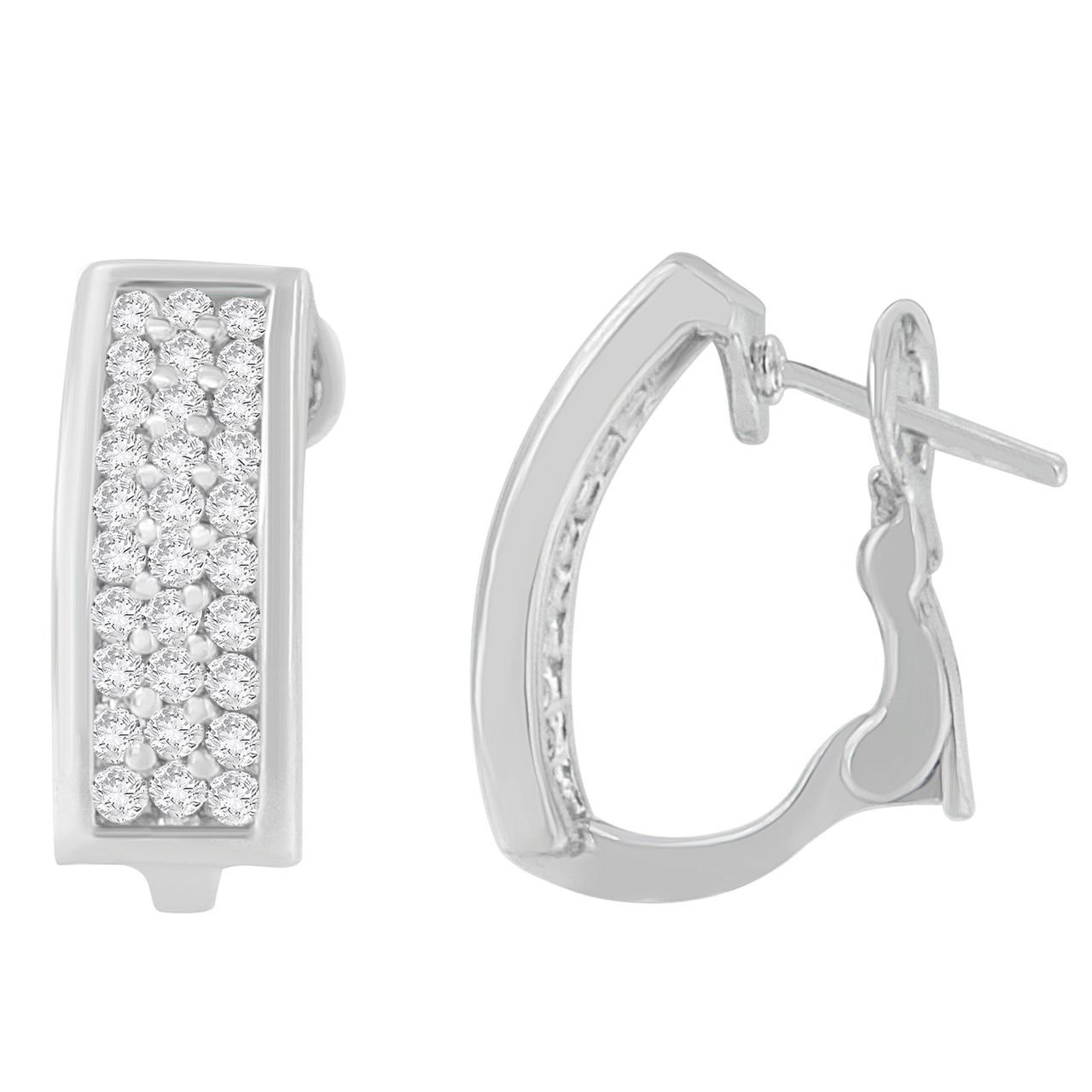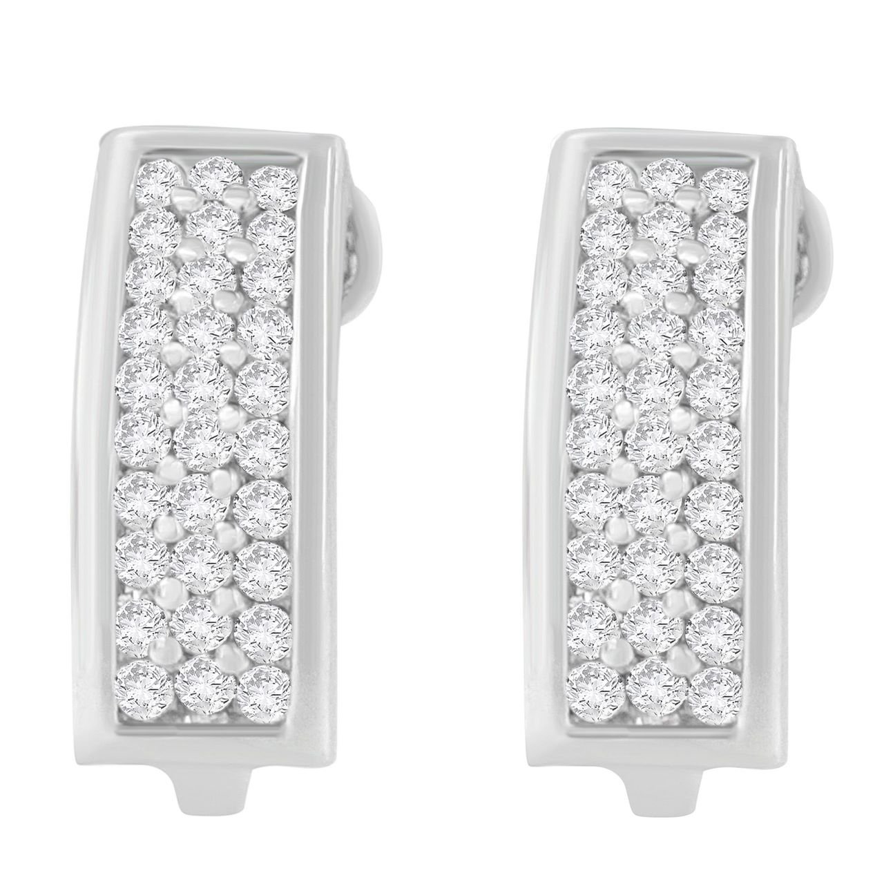 Lend a whimsical touch to any evening attire of yours with this stunning pair of earrings. Chisel to perfection, the earrings are constructed of 14 karats white gold. Elegant yet classic, featuring the three rows that are dazzled with sparkling round cut diamonds in a prong setting. It makes a perfect selection that every woman should have in their wardrobe.