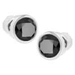 Elegant and timeless, these gorgeous 14K white gold solitaire stud earrings feature bold and beautiful heat treated, color enhanced black diamonds in a bezel setting. The earrings feature screwback closures. The notched posts and friction backs keep these pierced earrings safe and secure on your ears for comfortable, worry-free wear all day long. This authentic design is crafted of real 14 karat gold, a precious metal that will keep a tarnish-free shine for years to come. These reimagined classic stud earrings make a great gift for any special occasion! Diamonds are thought to give the wearer clarity and illuminate solutions to life’s problems, as well as encouraging abundance, strength, courage, harmony, faithfulness, and commitment. These stud style earrings are subtle enough for casual affairs but sparkle in formal settings as well. Coordinate these earrings with your favorite diamond necklace or other diamond jewelry to create a complete elegant ensemble.