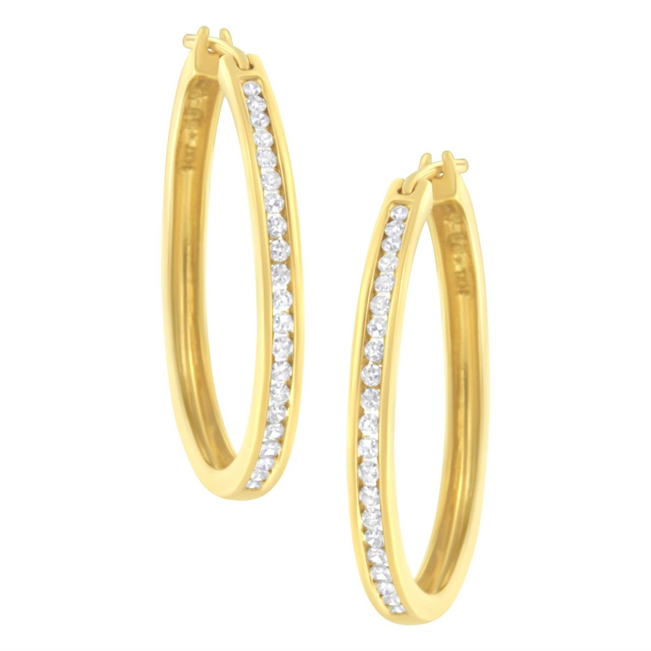 14K Yellow Gold 1/2 cttw Channel Set Diamond Classic Hoop Earrings (I-J Color, SI2-I1 Clarity)