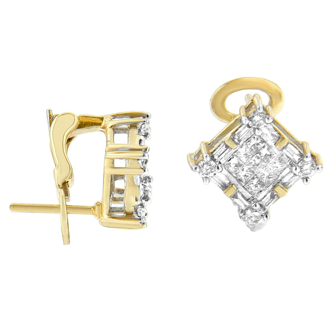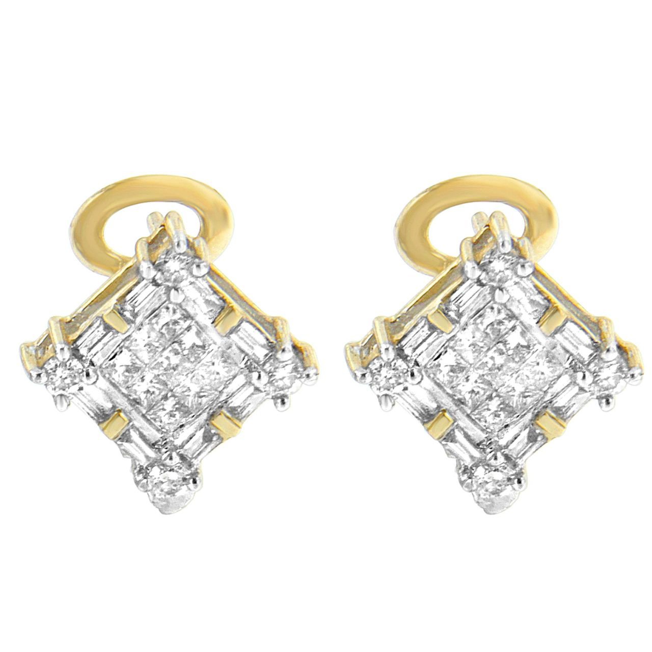 14K Yellow Gold 1 cttw Round, Baguette and Princess Cut Diamond Earrings (H-I, SI1-SI2)