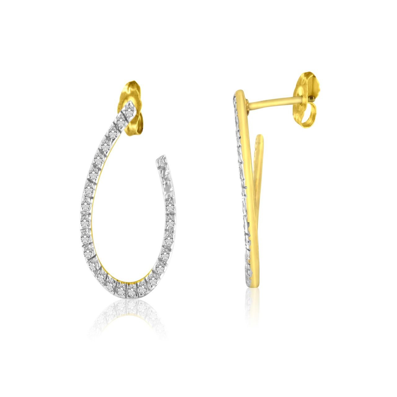 If the normal silver hoop earrings are not enough to dazzle up your style, step it up with these elegant diamond adorned hoops. Completed with a 14-karat yellow gold, the earrings are finely polished for a lustrous appeal. Also, the omega mechanism allows these cute beauties to sit on your earlobes gracefully.