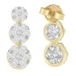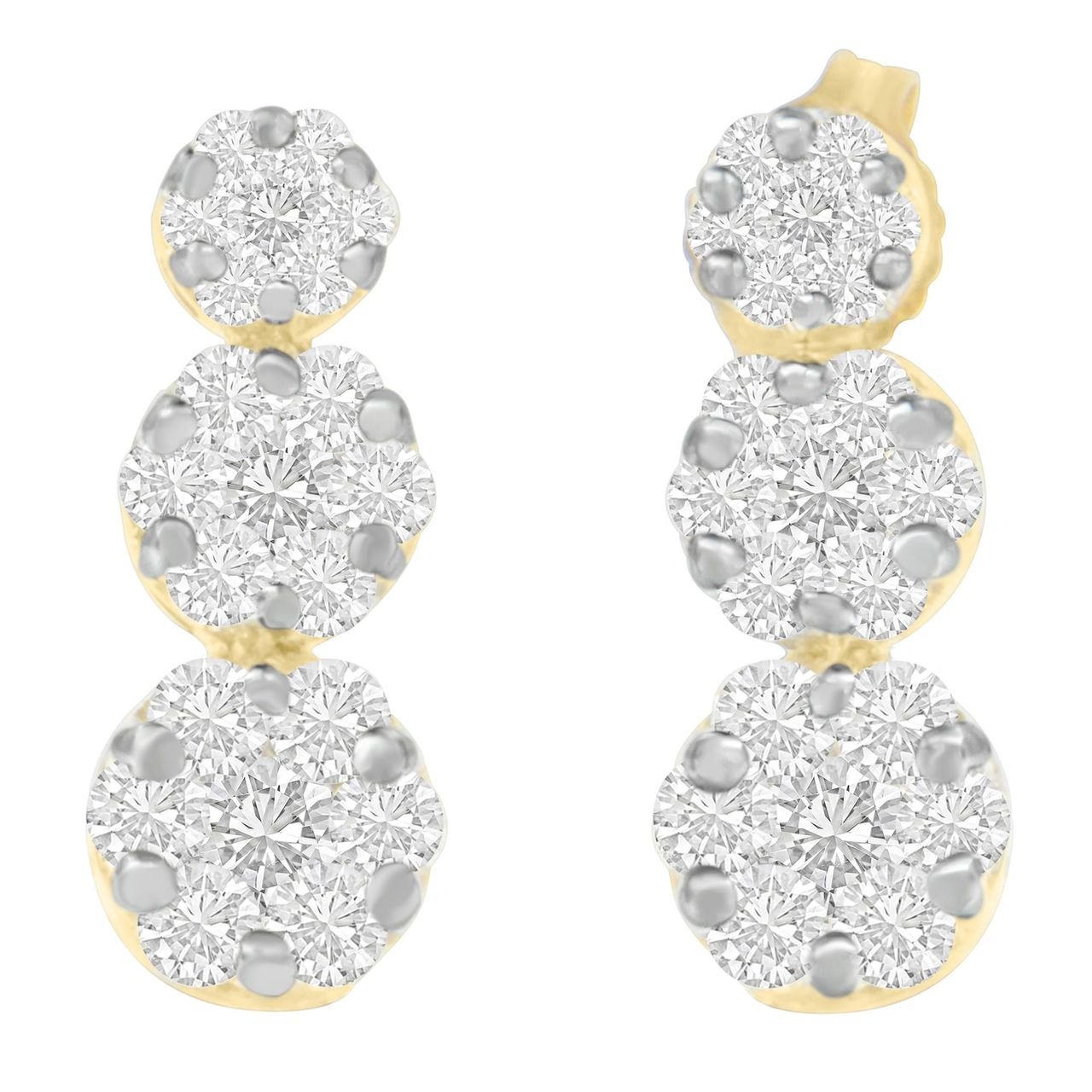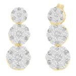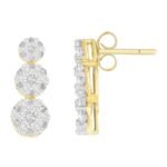 Represent your everyday posh style by wearing these glittery diamond earrings. Fashioned in a unique design, it features a trio of circles in a different size. Crafted of 14 karats yellow gold, the earrings are adorned with round cut diamonds in a prong style and give the illusion of bright stars.