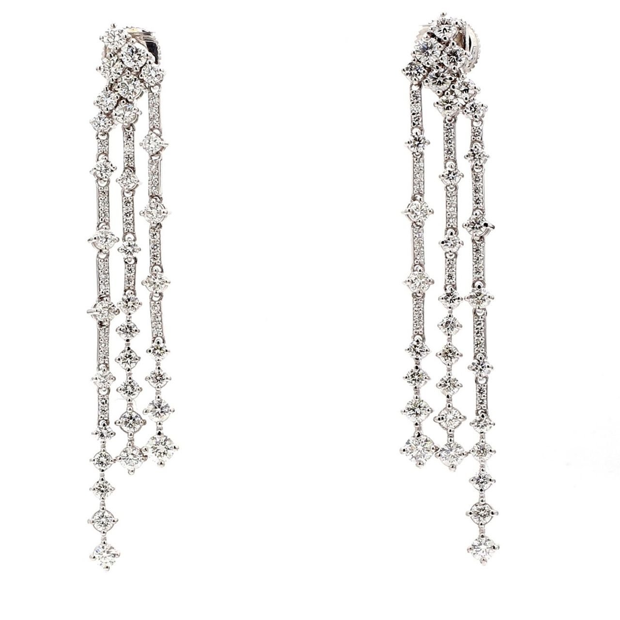 Chandelier style dangling earrings with prong set round diamonds. D4.65ct.t.w.