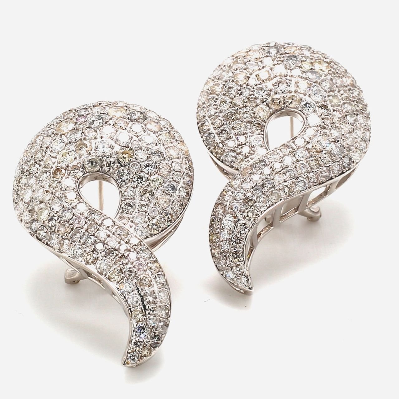 French clip back nautilus design earrings in 18K WG with pave set round diamonds. D7.10ct.t.w.