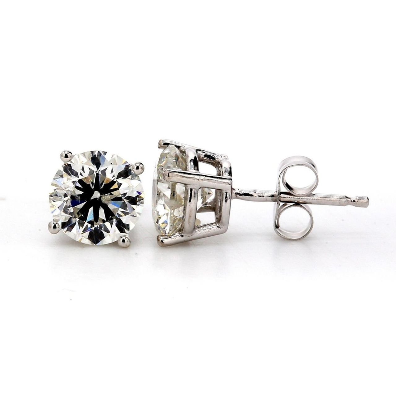 Push back stud earrings with 4-prong set USA certified E-F/SI3-I1 round diamonds. D2.01ct.t.w.