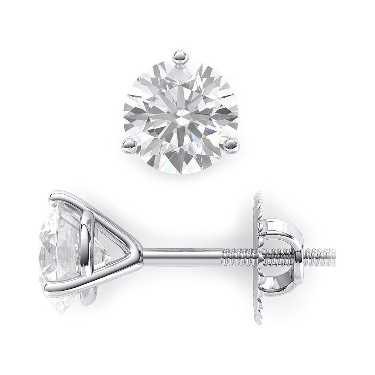 Screw back martini style stud earrings with 3-prong set I/VS round diamonds. D0.75ct.t.w.