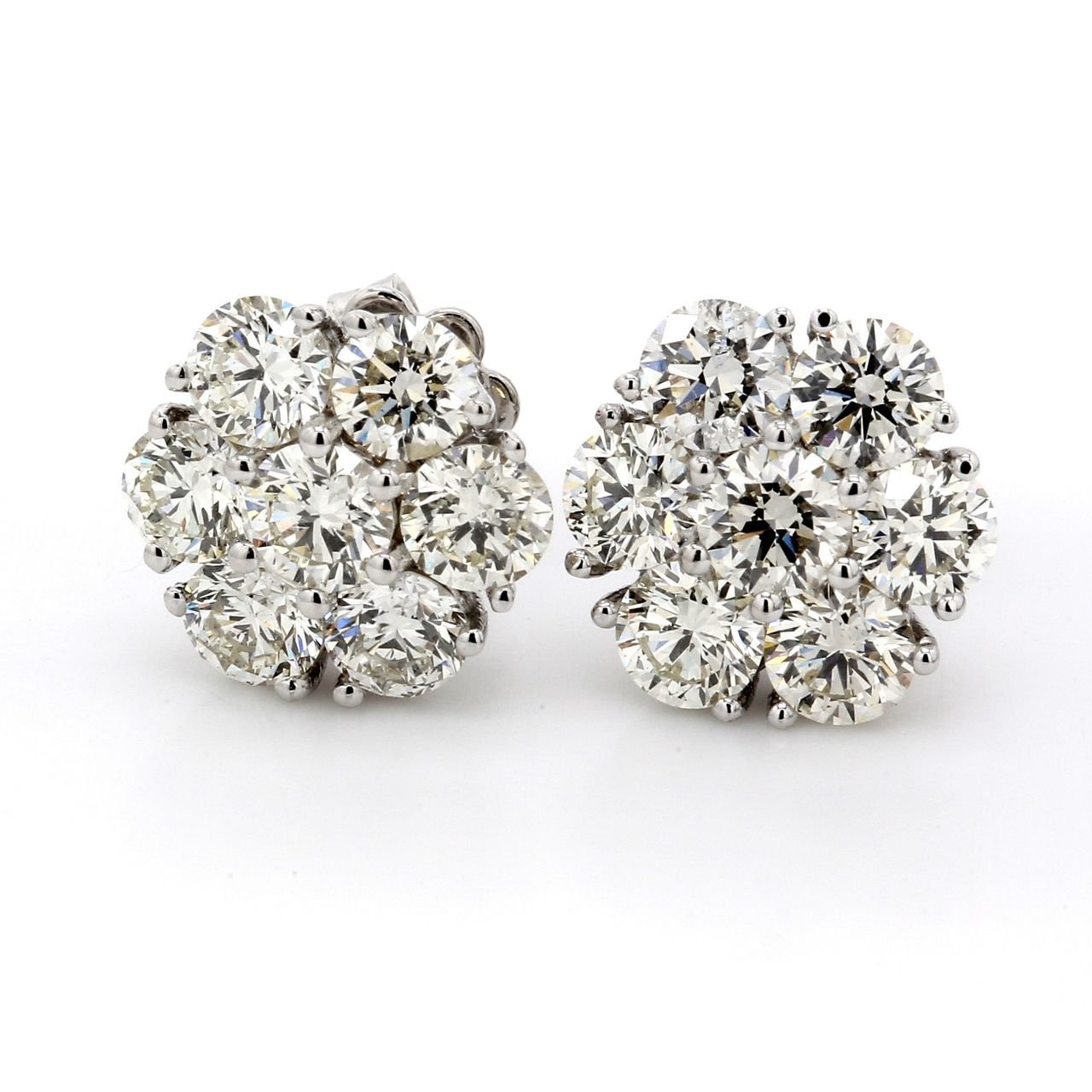 Screw back stud cluster earrings with prong set (14) round diamonds. D3.53ct.t.w.