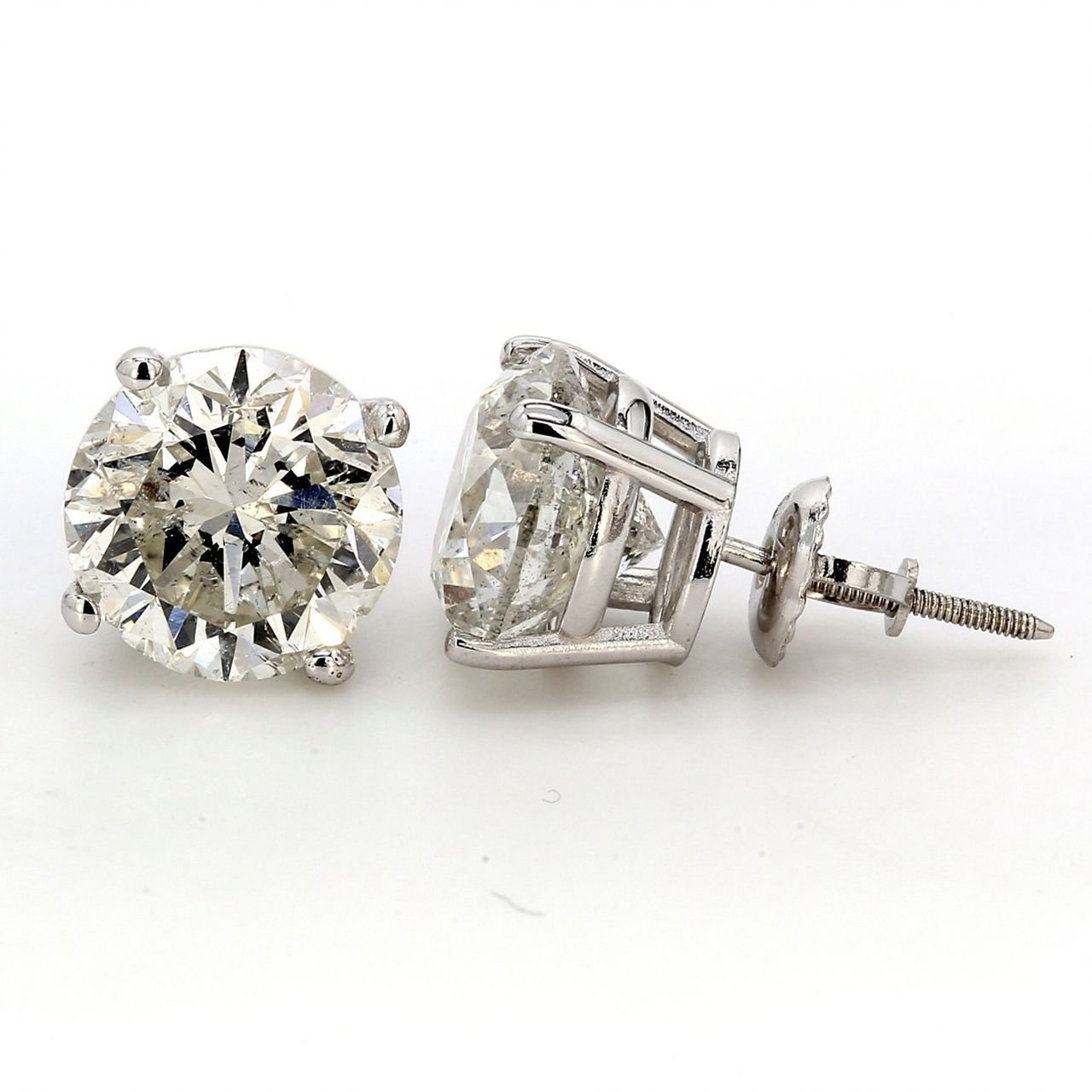 Screw back stud earrings with 4-prong set USA certified E/SI3 round diamonds. D2.00ct.t.w.