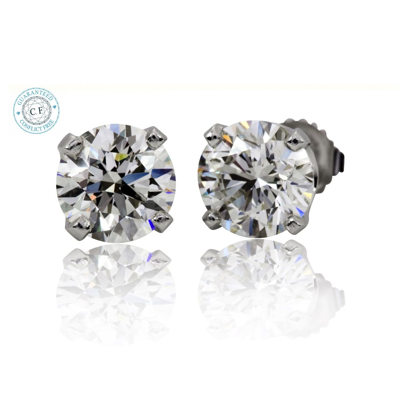 Studs-1 1/2 Ct Studs 14K Gold, Diamond 14k White Gold