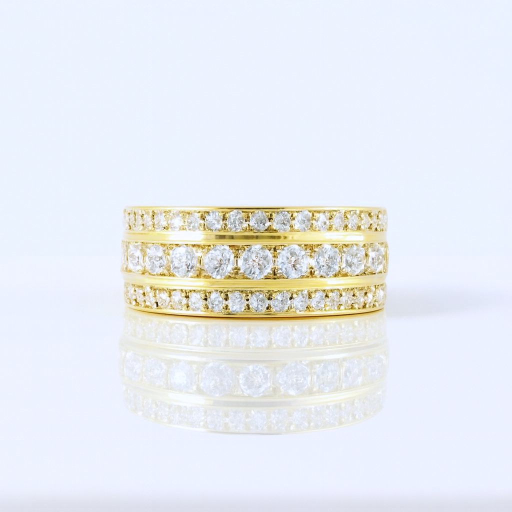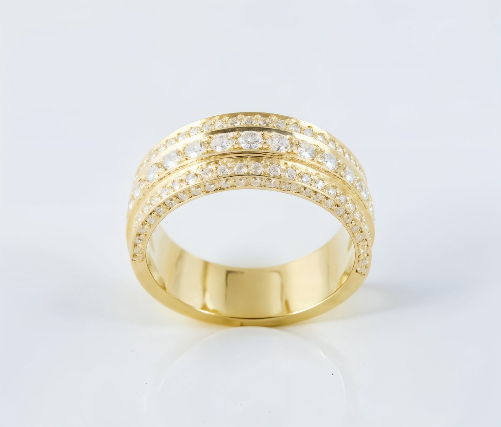 Custom made 18k Yellow Gold Man’s Wedding Band, 10mm wide, fully iced-out half-way.