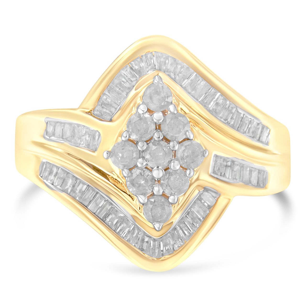 10K Yellow Gold Diamond Bypass Cluster Ring (1 Cttw, I-J Color, I2-I3 Clarity) – Size 6