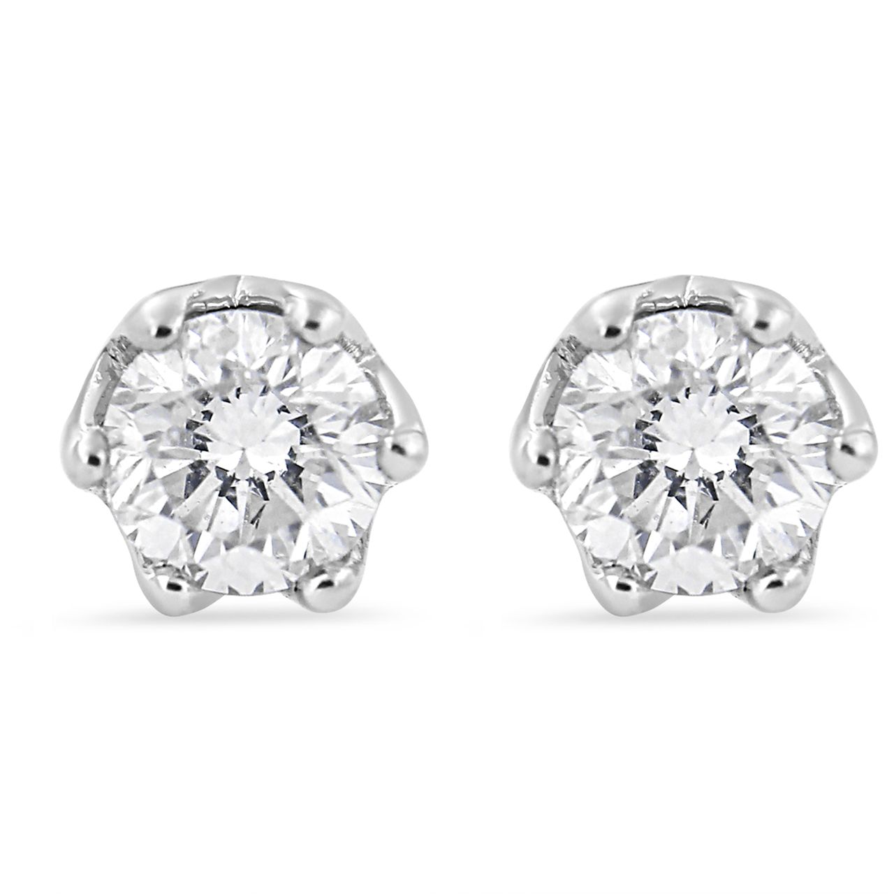 14K White Gold 1/2 Cttw Round Diamond 6 Prong Crown Stud Earrings (I-J Color, I1-I2 Clarity)