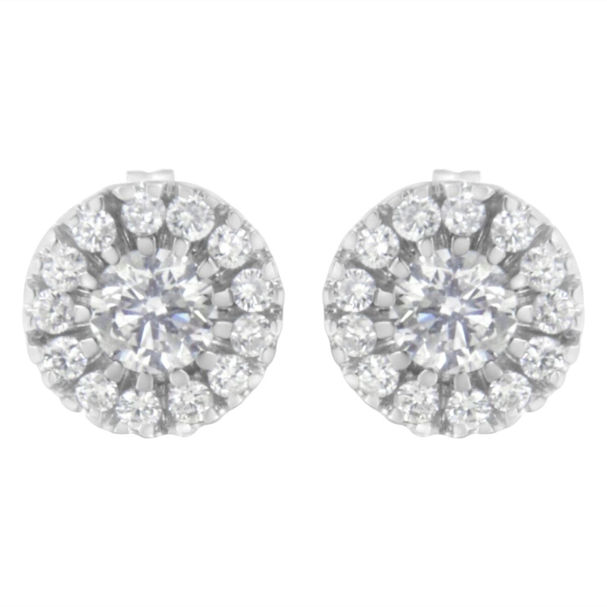 14k White Gold 1 cttw Diamond Halo Stud Earrings (I-J Clarity, I1-I2 Color)
