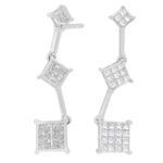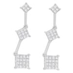 Complete her charming look with these adorable yet sophisticated diamond earrings. Designed in a modern style, the beautiful earrings features a trio of three square-shaped accents and composed of rich 14 karats white gold. Each of the earrings captivates the flickering princess cut diamonds, arranged in an invisible setting.