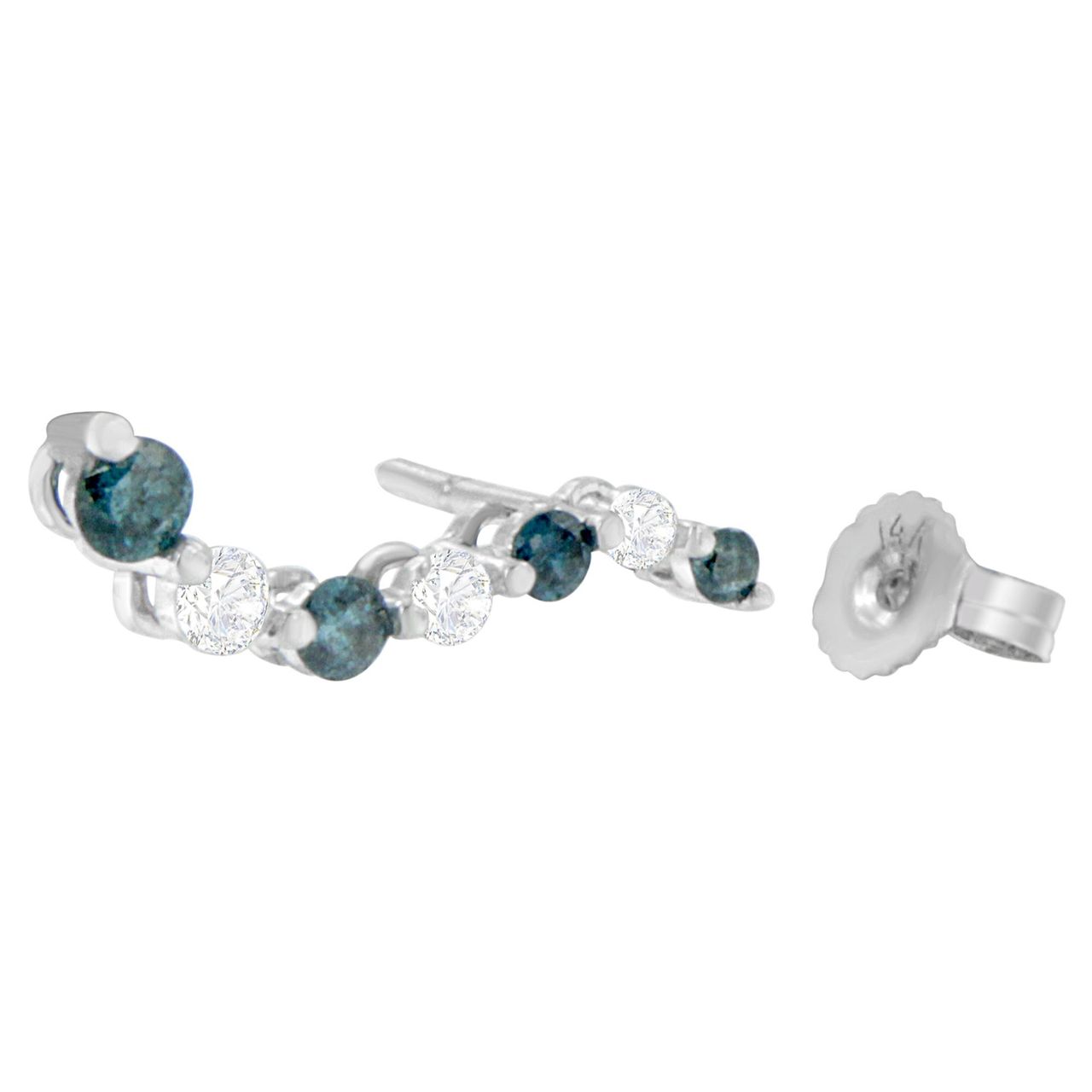 14K White Gold 1 cttw Round Cut Diamond Treated Blue Earrings (H-I, I1-I2)