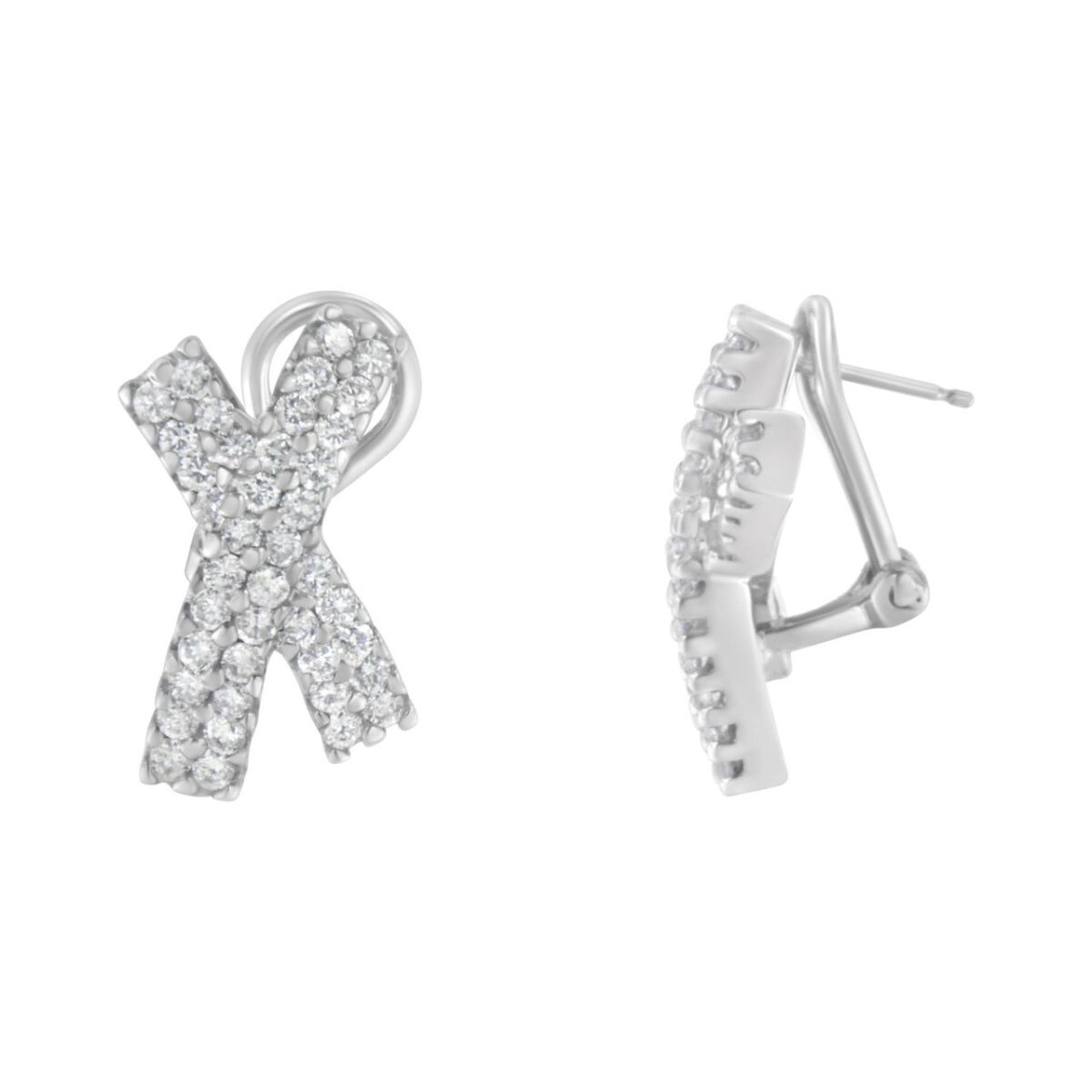 You will fall in love with these elegant X-shaped stud earrings. A must have for any serious jewelry collection, these 14K white gold earrings boast an impressive 2.0 carat total weight of diamonds with a whopping 80 individual stones. The domed X-shaped earrings feature overlapping bands inset with pave set round, brilliant cut diamonds. These stud earrings feature an omega back post with clip backing in case you want to have them converted at your local jeweler’s to comfortable clip-ons for non-pierced ears. These classic, bold earrings make a great gift for any special occasion! Whether worn for daytime glamour or evening sparkle, these earrings are gorgeously versatile. Give her a gift that will perfectly complement her favorite ensemble.
