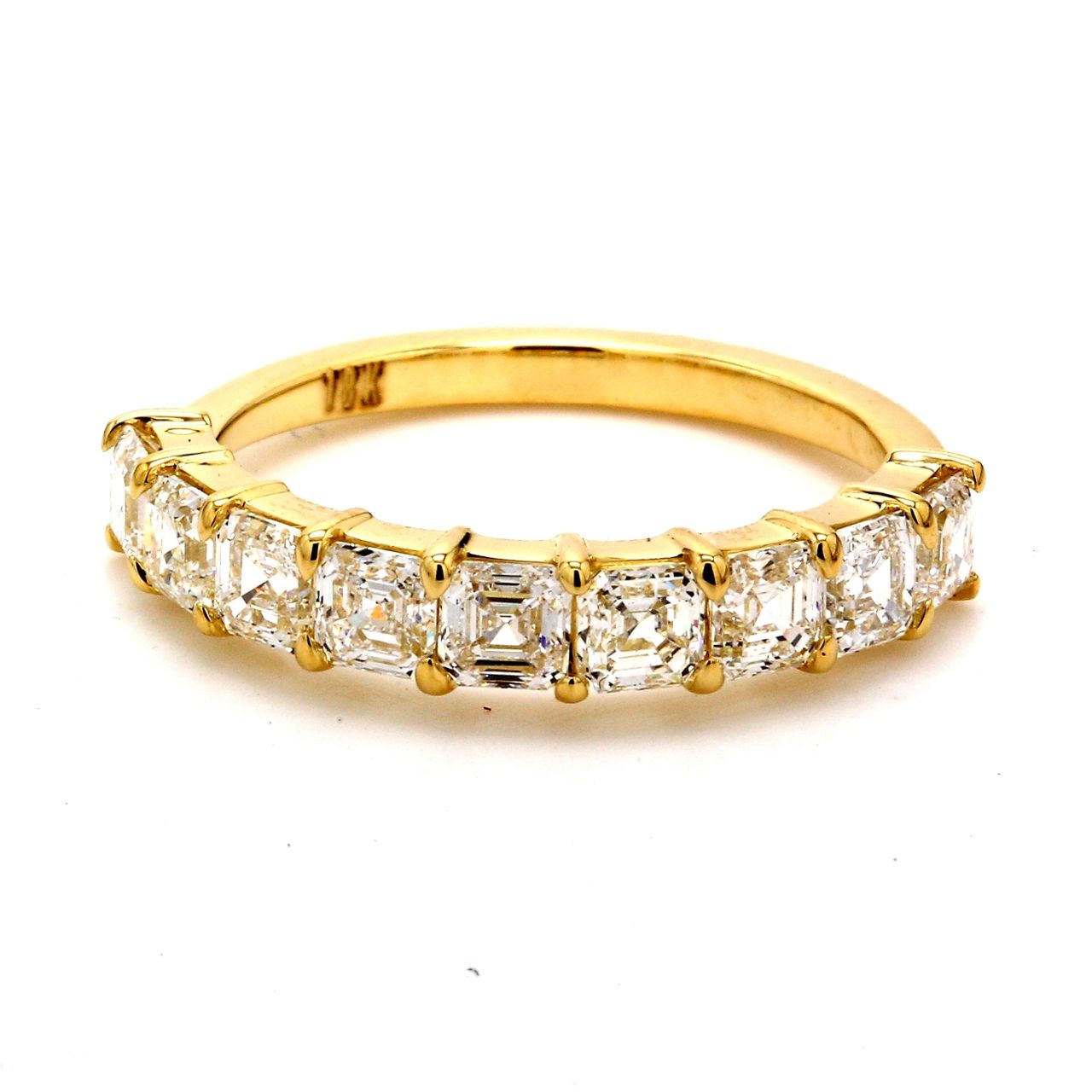 9-stone band in 18K YG with basket prong set asscher cut diamonds. D1.67ct.t.w. Size 6