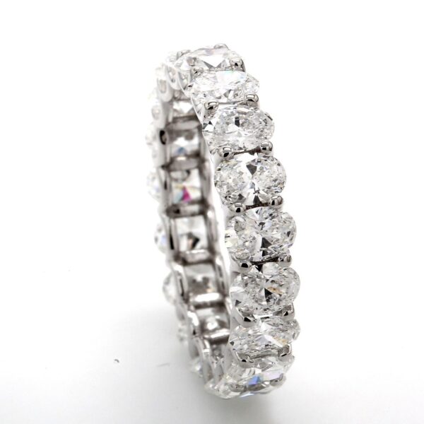 Eternity band in platinum with shared basket prong set (20) oval diamonds. D3.76ct.t.w. Size 6
