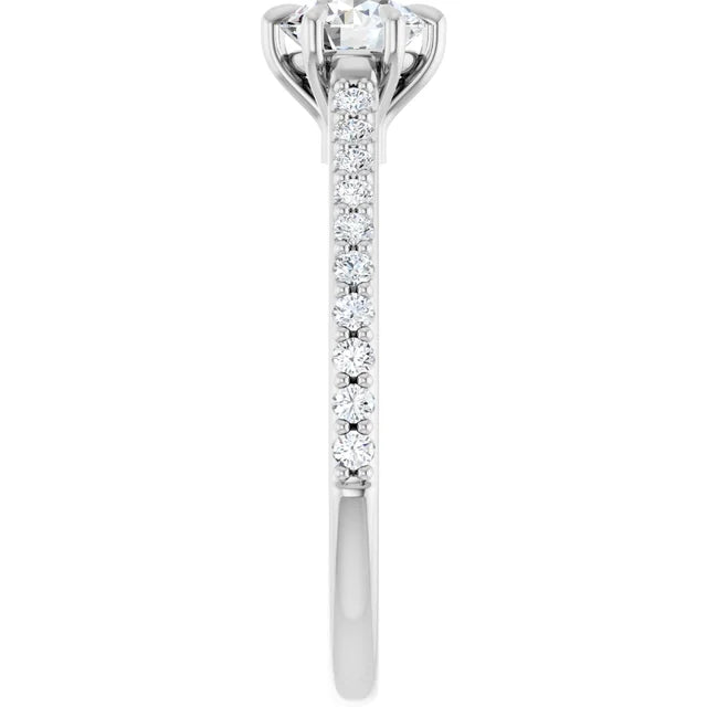 14K White Gold 0.70 CTW Round Pavé Band Diamond Engagement Ring