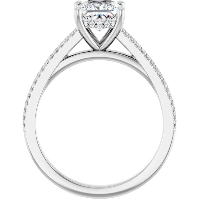 14K White Gold 1.19 CTW Princess Pavé Halo Diamond Engagement Ring