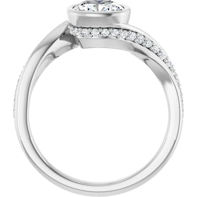 14K White Gold 1.88 CTW Cushion Twisted Pavé Diamond Engagement Ring