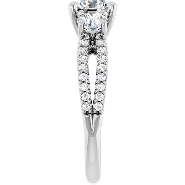 14K White Gold 1.90 CTW Round Three-Stone Pavé Diamond Engagement Ring