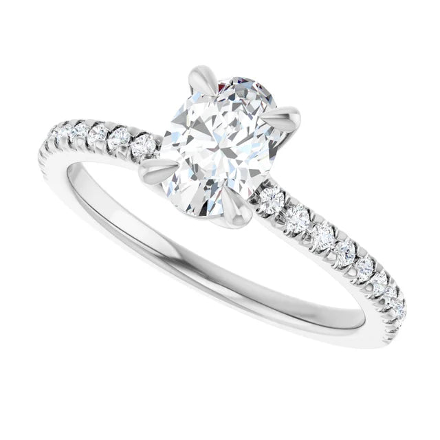 14K White Gold Oval 1.00 CTW Pavé Diamond Engagement Ring
