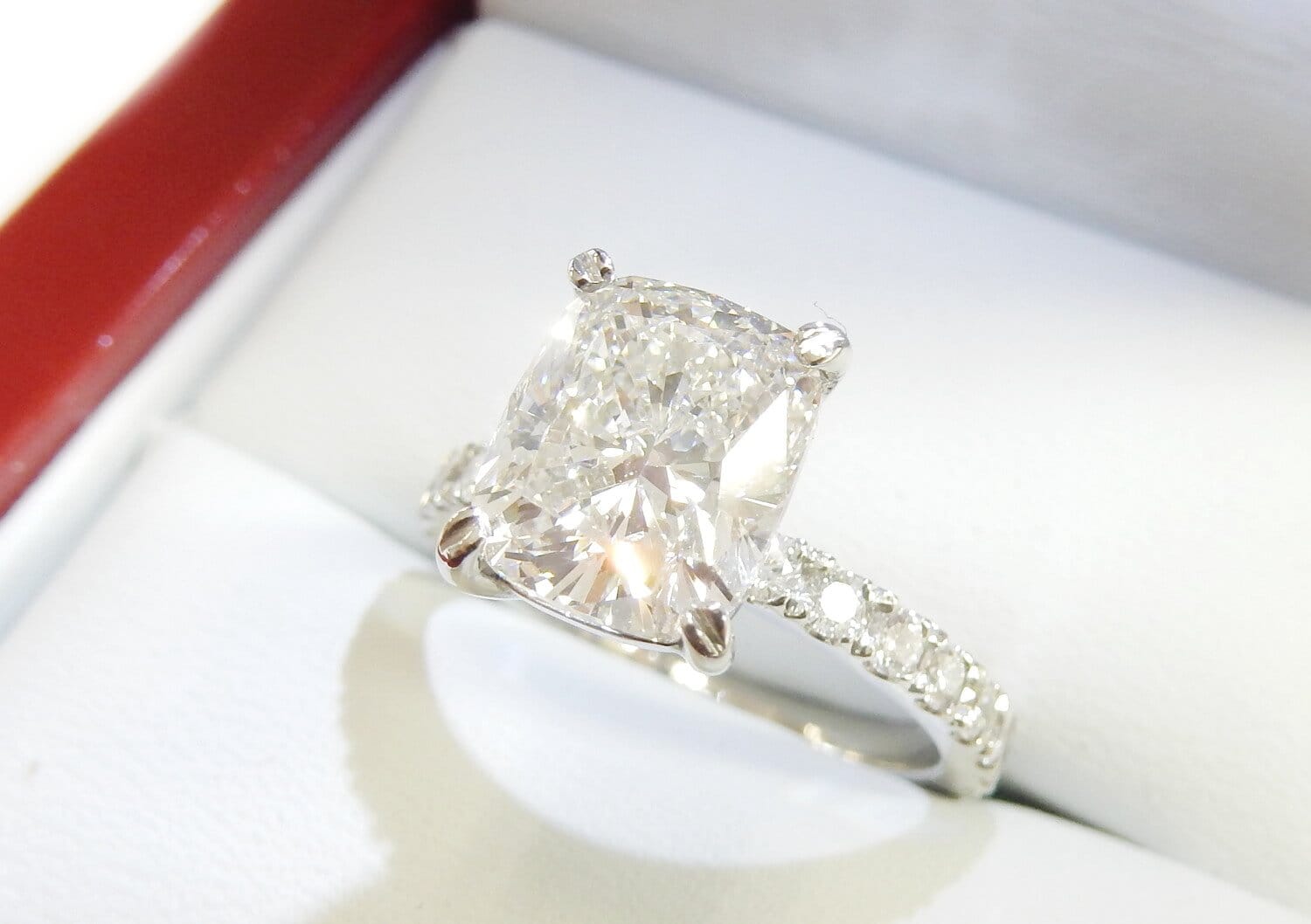 19K White Gold 2.50 CTW Cushion Cut Diamond Engagement Ring