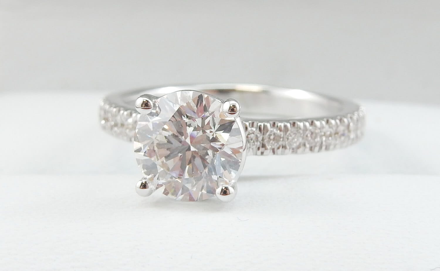 18K White Gold 1.25 CTW Round Brilliant Pavé Band Diamond Engagement Ring