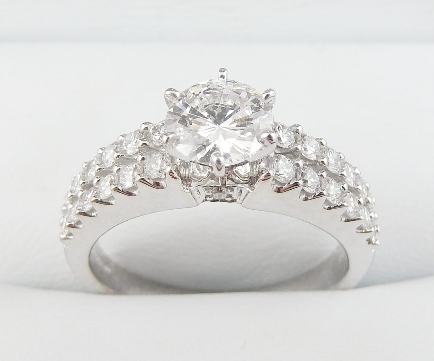 14K White Gold 0.70 CTW Round Diamond Triple-Row Pave Engagement Ring