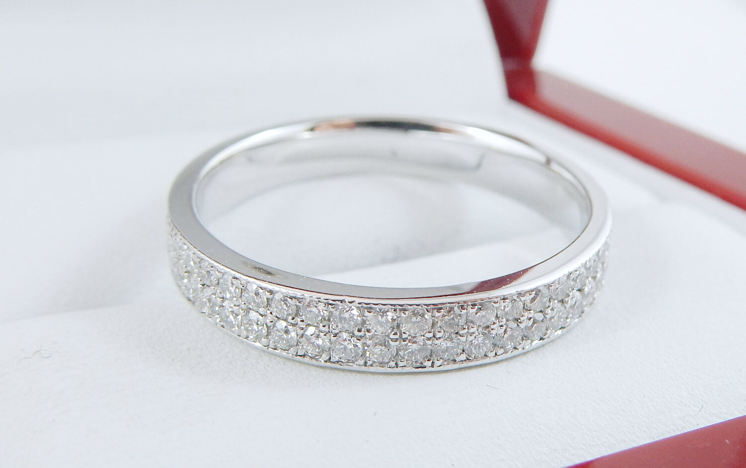 19K White Gold 3mm Pave Diamond Men’s Wedding Band