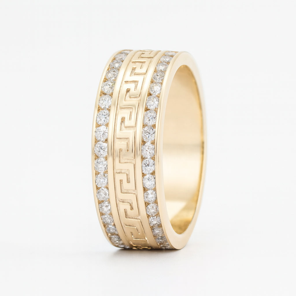 18K Yellow Gold 2.00 CTW Diamond Greek Key Men’s Wedding Band