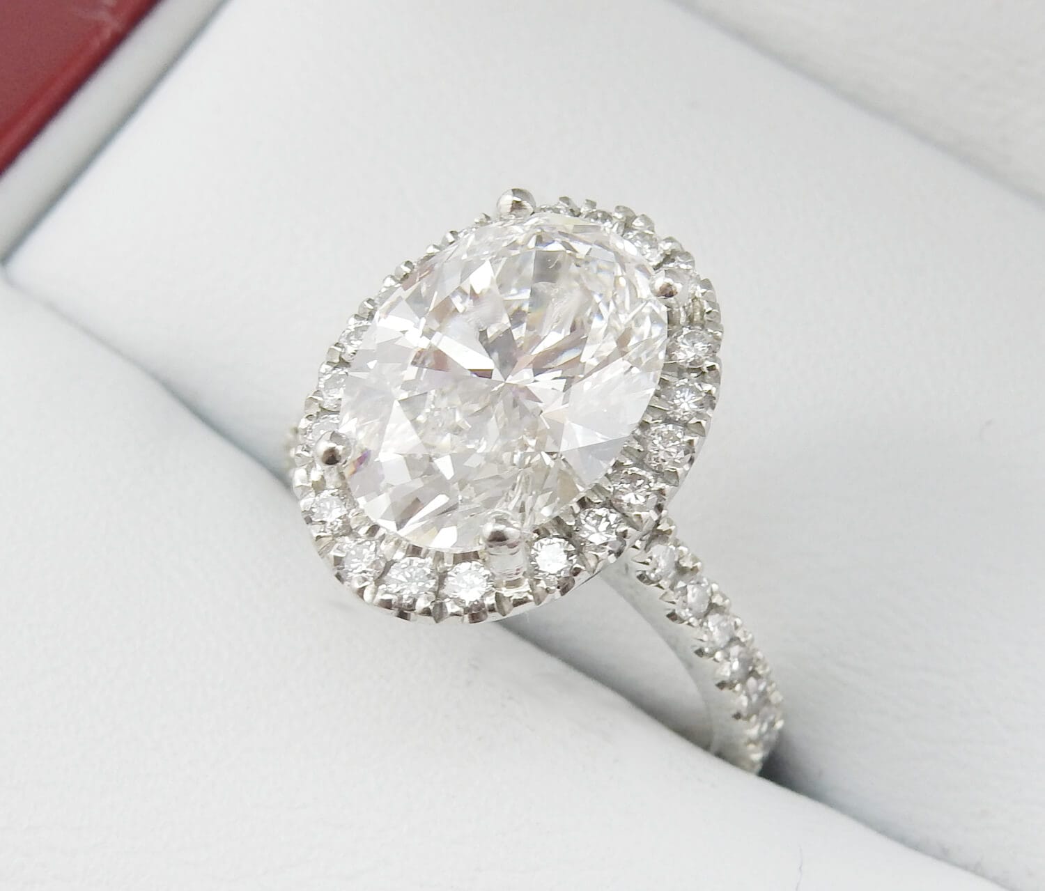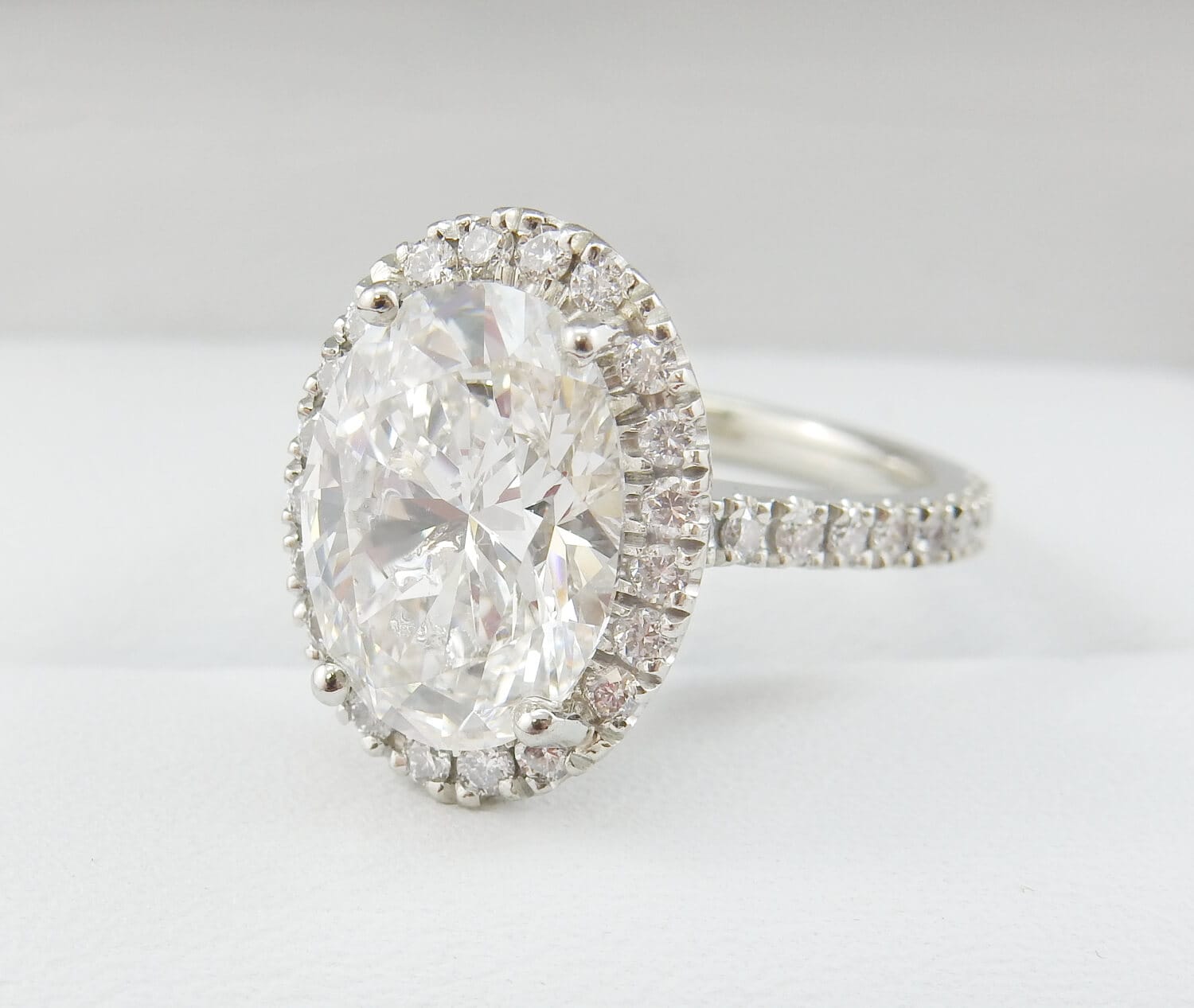 19K White Gold 3.19 CTW Oval Halo Pavé Band Diamond Engagement Ring
